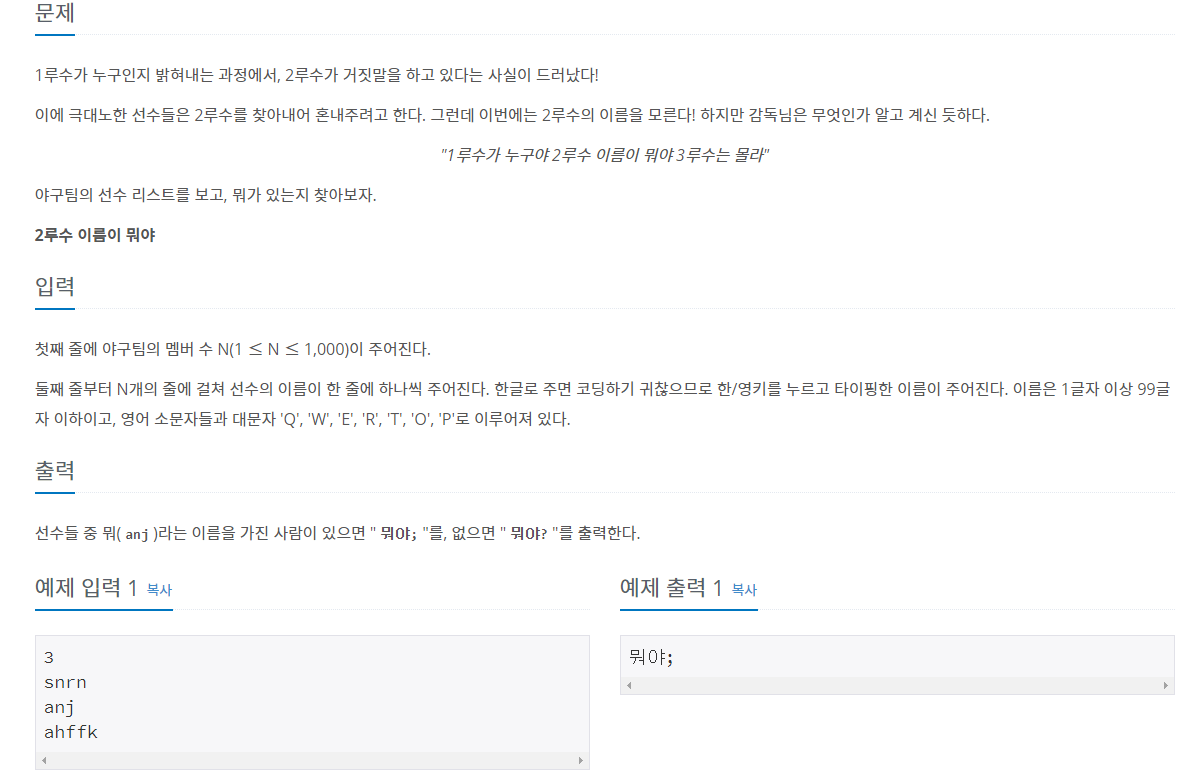 if "anj" in tmp: print("뭐야;")