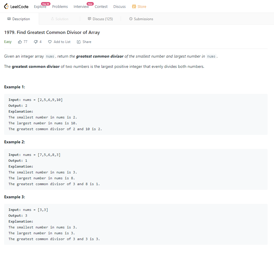 nums에서 가장 큰 값, 가장 작은 값의 gcd를 return 하면됩니다